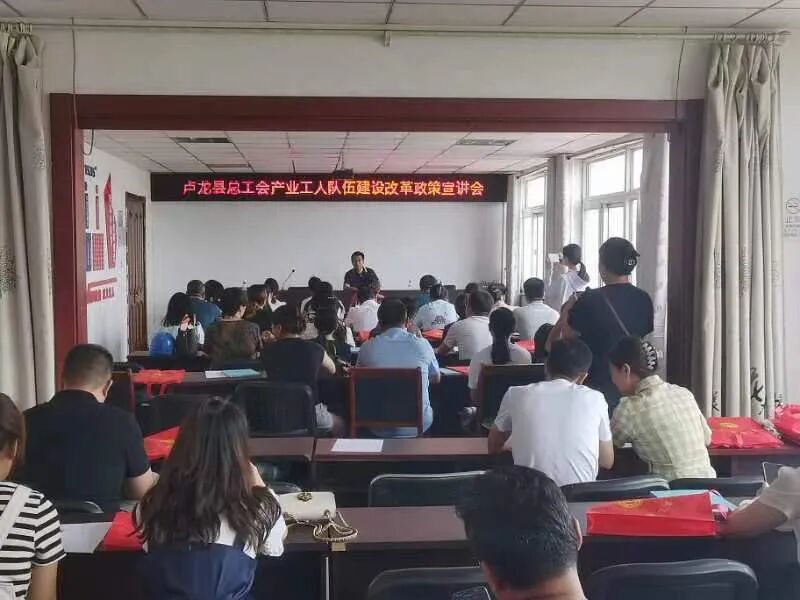 为加强产业工人队伍建设改革,提升产业工人队伍建设相关政策知晓度,7月20日,卢龙县总工会在卢龙县经济开发区总工会大会议室开展产业工人队伍建设改革政策宣讲活动。
