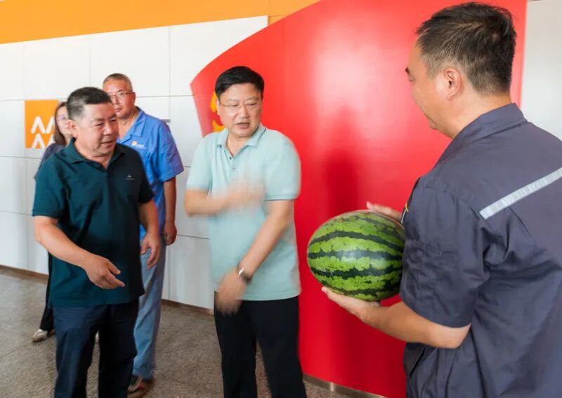 进入暑,气温节节攀升,但生产一线员工仍然坚守在岗位上。8月2日,由董事长黄涌生、工会主席赵瑞龙、副主席刘峰及相关人员抵达作业现场,看望慰问奋战在高温下的一线员工。![1691113708136304.jpg]()