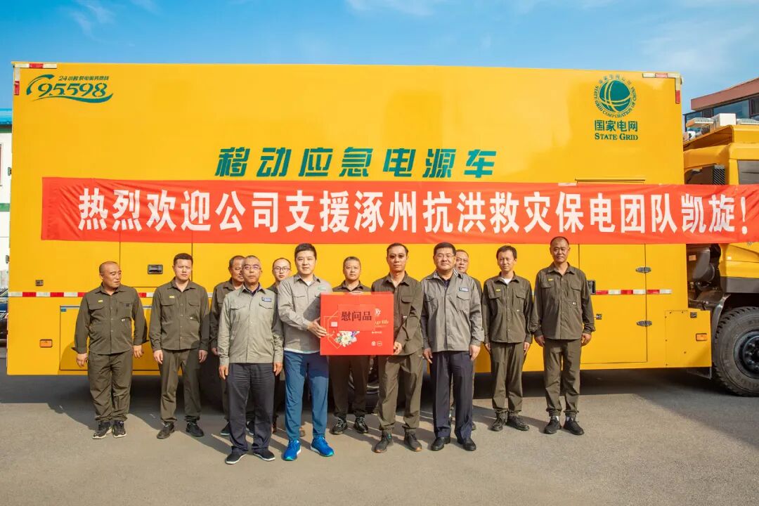 9名具有抗洪保电经验的应急保电人员,两组发电车,一辆后勤保障车,于8月3日抵达涿州市。在涿州市供电抗洪救灾保电指挥部的统一指挥下,经过6个昼夜的奋战,公司保电团队接连为军怡公馆、御景园、香邑溪谷3个小区开展了保供电工作,未发生安全事故,累计发电量15000余千瓦时,解决了3000余户居民的生活用电,圆满完成了本次抗洪救灾保电任务,受到当地政府和居民的一致认可和赞扬。