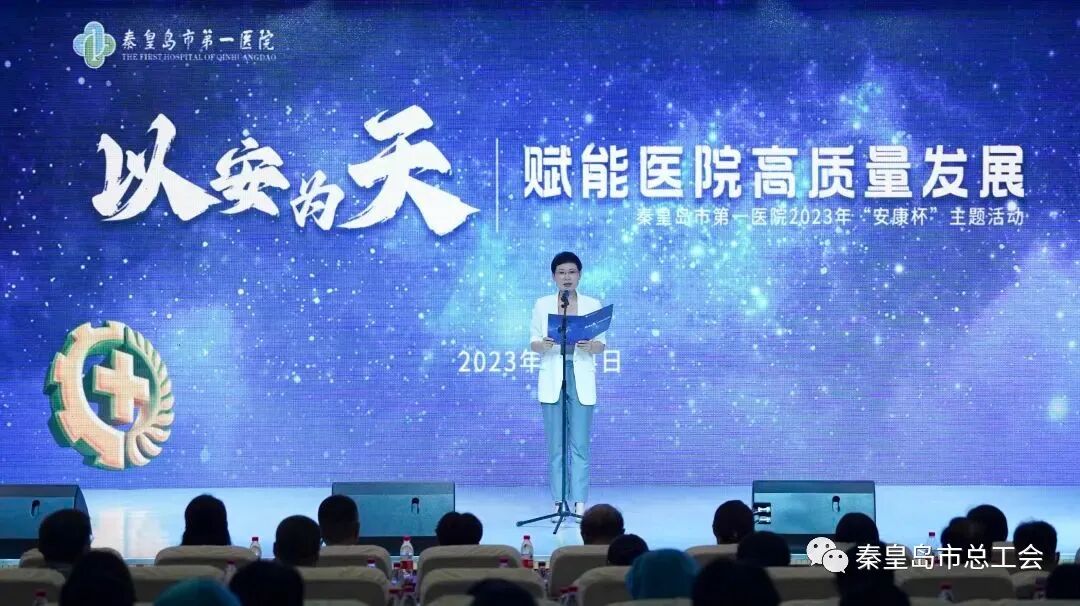 8月4日下午,秦皇岛市第一医院“以安为天 赋能医院高质量发展”安康杯主题活动,在医院行政楼六楼报告厅隆重举行。市总工会教科文卫工会主席禹超、市卫健委副主任郭宇辉,医院党委书记郑岳及其他领导班子出席活动现场。来自全院13个分工会职工代表及安全员300余人参加了活动。