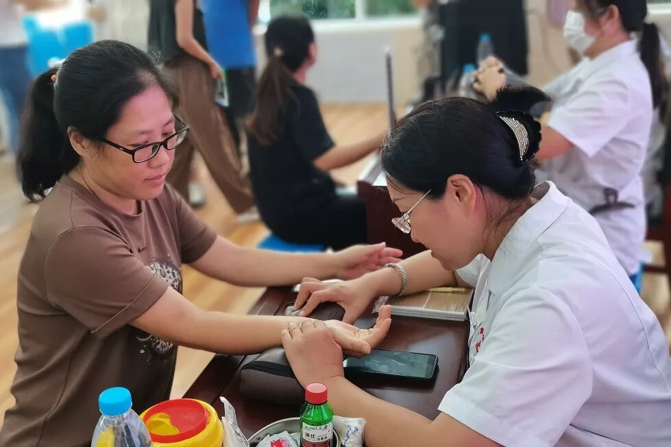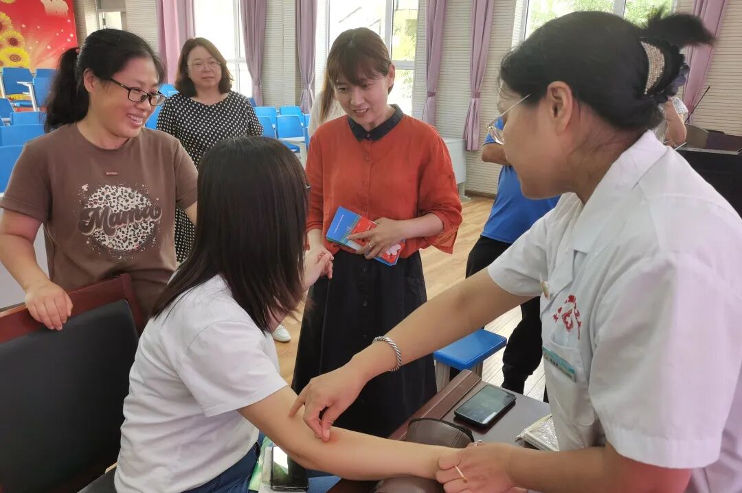 活动中,戴河镇卫生院院长周胜男带领“天使守护团”成员现场为海北路小学教职工进行了耳诊、血压检测、中医脉诊等现场检测,认真耐心解答教师们关于健康问题的咨询,并给予大家针灸、按摩等现场调理。便捷、优质、高效的诊疗服务,受到现场教职工的一致称赞。