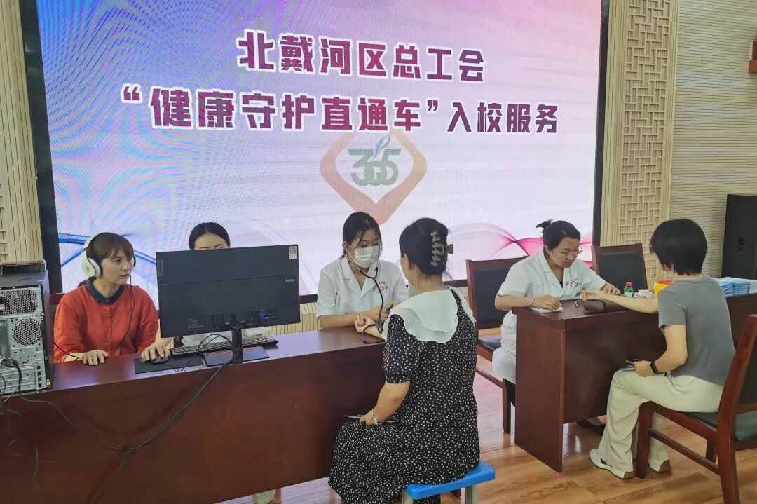 为切实关心关爱教职工身心健康,提高健康意识,倡导健康生活方式,9月7日,北戴河区总工会“健康守护直通车”走进海北路小学开展健康服务。