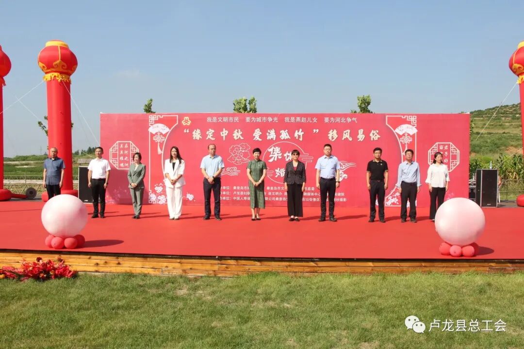 为深入推进移风易俗和“双争”活动,教育引导广大未婚青年树立正确的婚恋观、家庭观和人生观,倡扬节俭婚姻、文明婚俗,加强和谐婚姻家庭文化建设,培树健康文明家庭新风尚,在“中秋节”“国庆节”即将到来之际,由秦皇岛市妇联、卢龙县委主办,卢龙县总工会、县妇联、县文明办、县融媒体中心、县妇幼保健院联合承办、中国人寿保险股份有限公司秦皇岛分公司、秦皇岛左右庄园生态农业科技有限公司、喜多喜婚纱摄影协办的“缘定中秋 爱满孤竹 ”移风易俗集体婚礼活动在左右山谷举行。