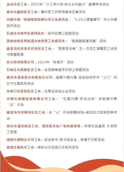 2023年“网聚职工正能量 争做中国好网民”主题活动是全国总工会和中央网信办为深入贯彻落实习近平总书记关于“培育中国好网民”重要指示精神在工会系统开展的重要活动。在各级工会组织和广大职工朋友们的积极响应下,经过初筛、网络投票、专家评审等环节,我市主题活动取得丰硕成果。