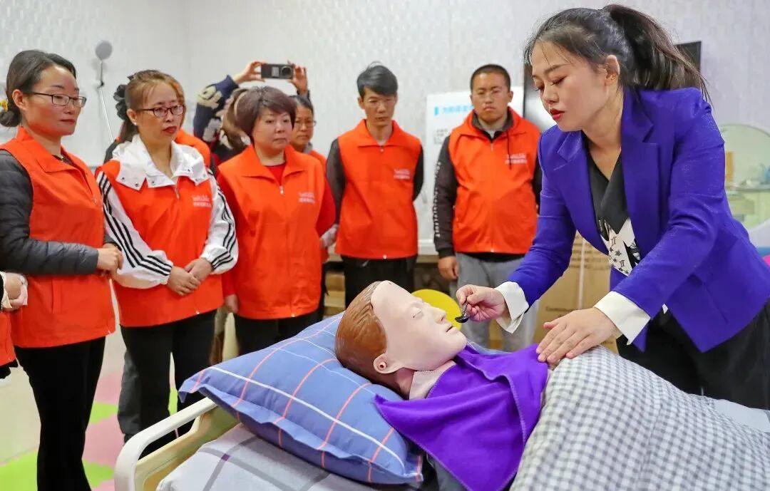 本次培训班为期10天,通过“现场教学+理论知识+实际操作”的程序进行培训,为学员讲解老年护理基础知识及相关法律法规、生活照料、康复护理、心理护理、智能设备应用等重点、难点、热点知识,并通过“情景模拟+社会实践”提升学员实际参与和熟练度,并积极和用工单位对接,培训后为优秀学员提供就业岗位,为学员从事养老护理工作,实现自主创业就业提供良好的学习平台。