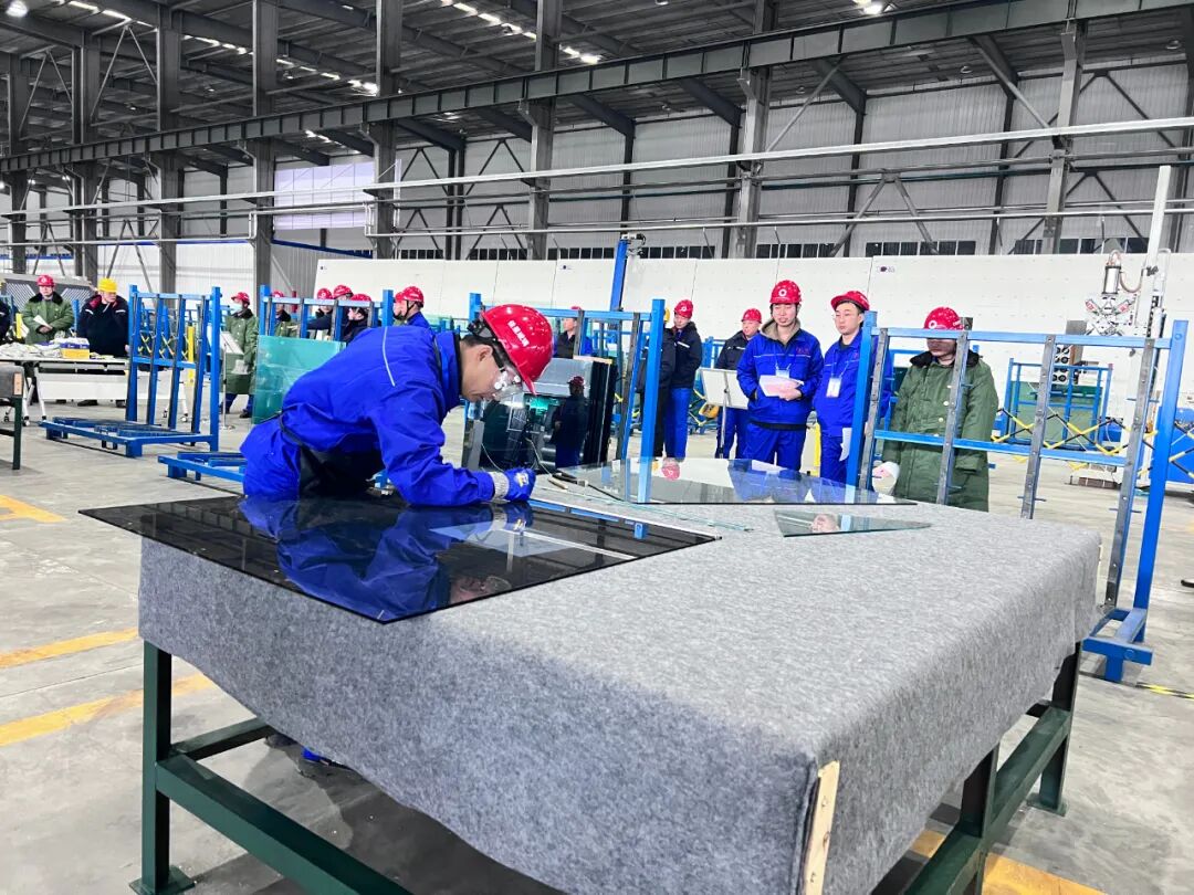 本次比赛的深加工全工种比赛由佳星玻璃承办,室外气温零下摄氏20多度,实操比赛在车间现场进行,参赛的17名职工和裁判员、工作人员认真、负责,没有一个喊冷,最终圆满完成了比赛。