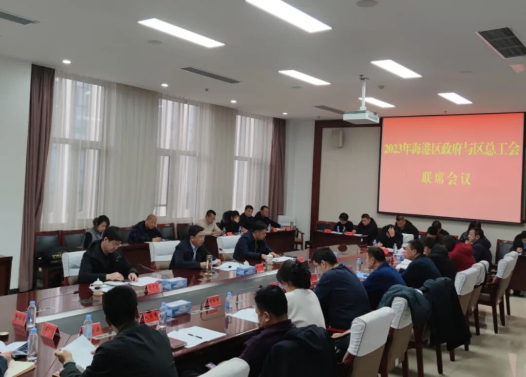 12月15日,海港区政府与区总工会召开联席会议,进一步增强工会组织的影响力、凝聚力、号召力,为推进全区经济社会高质量跨越式发展作出新的更大贡献。海港区委副书记、代区长尹勃主持会议并讲话。