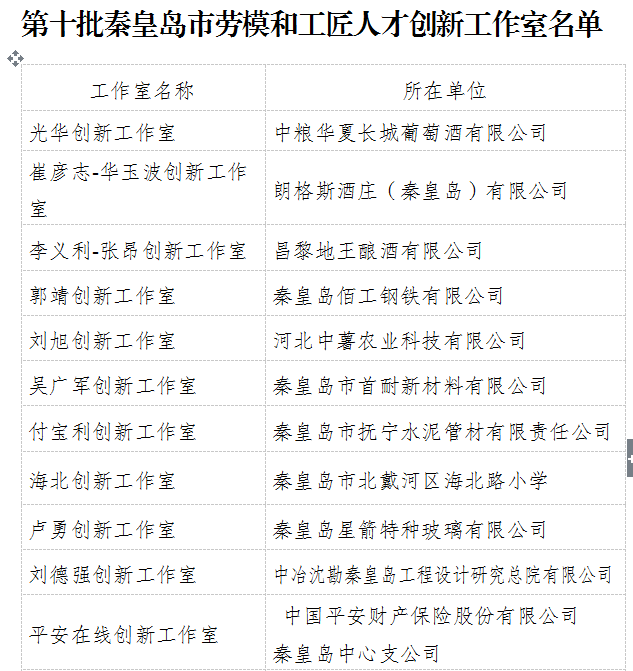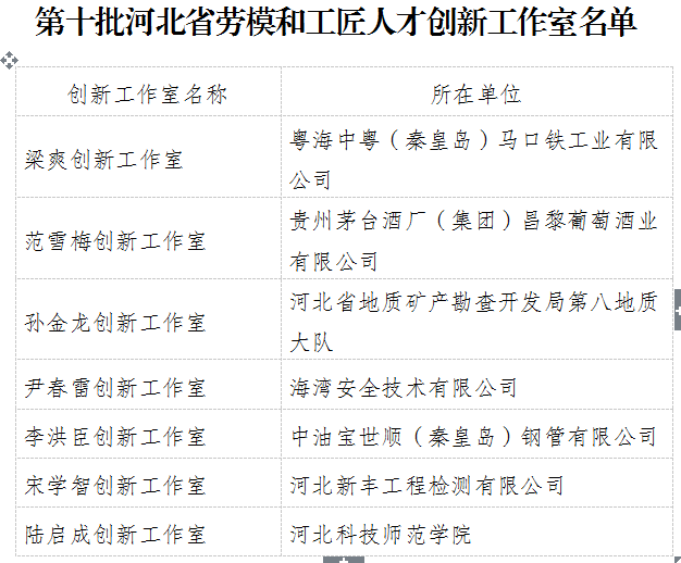 近日,河北省总工会、河北省科学技术厅公布了2023年(第十批)省级劳模和工匠人才创新工作室名单,我市7家获得命名,在全省位居前列。我市2家获得第一批省级示范性劳模和工匠人才创新工作室命名,25家获得市级劳模和工匠人才创新工作室命名。