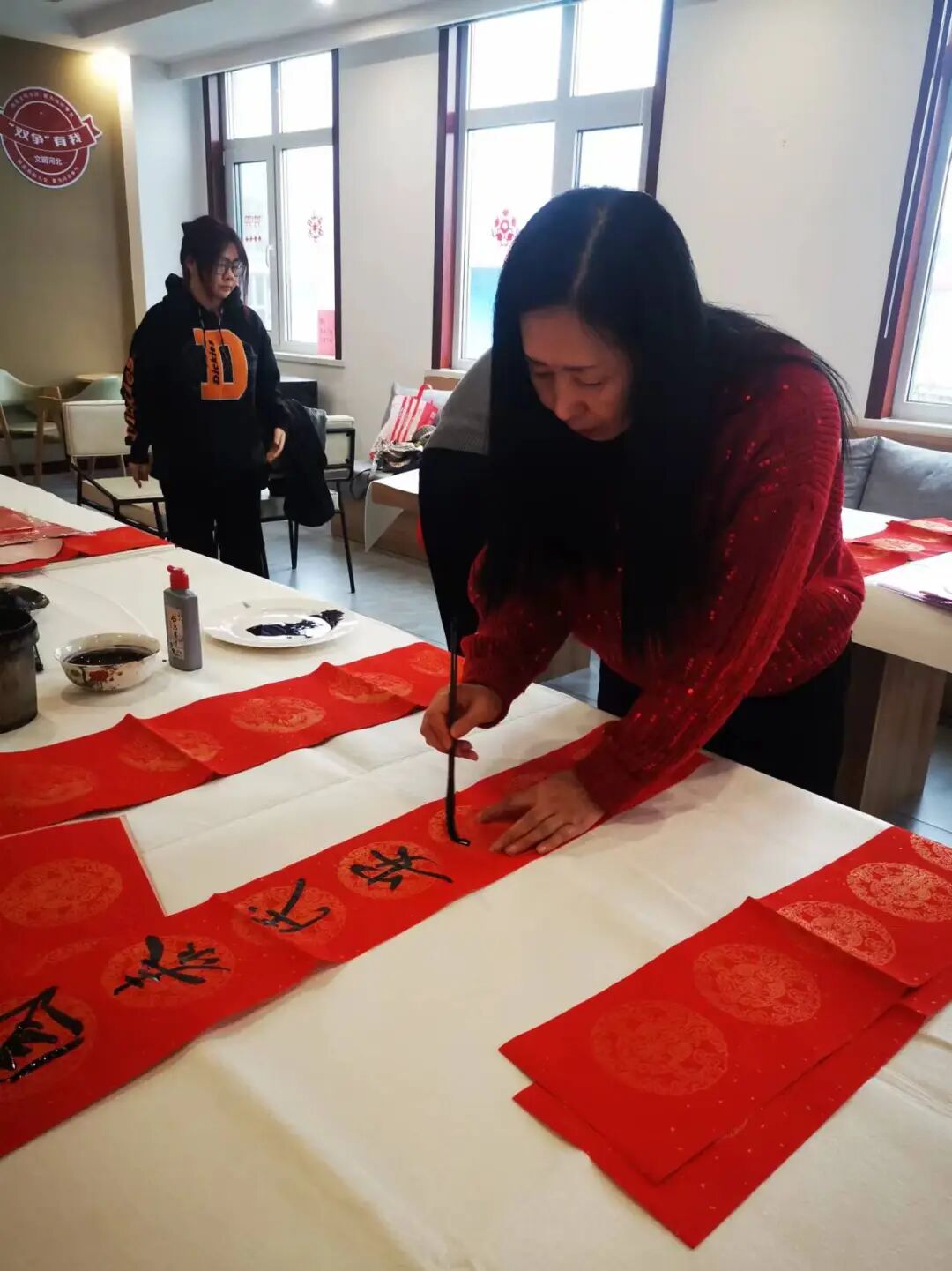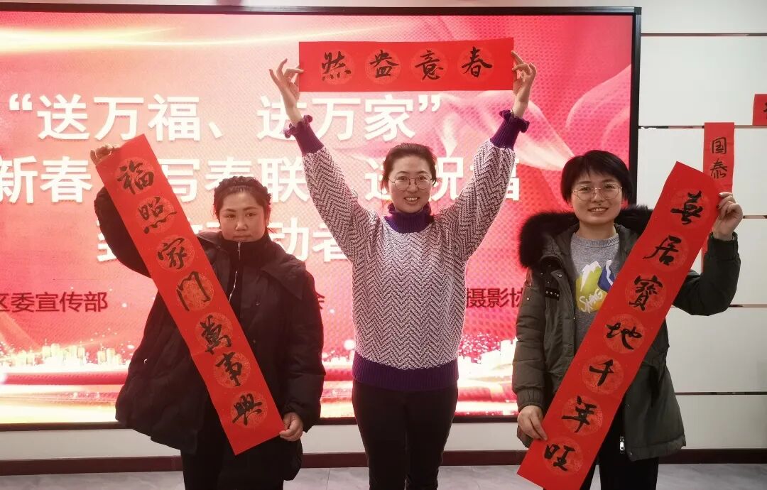 活动邀请区书法协会马波主席及协会成员现场书写春联和“福”字。一副副年味浓、寓意好的春联和一张张喜气洋洋的“福”字,都饱含着辞旧迎新的美好祝愿。