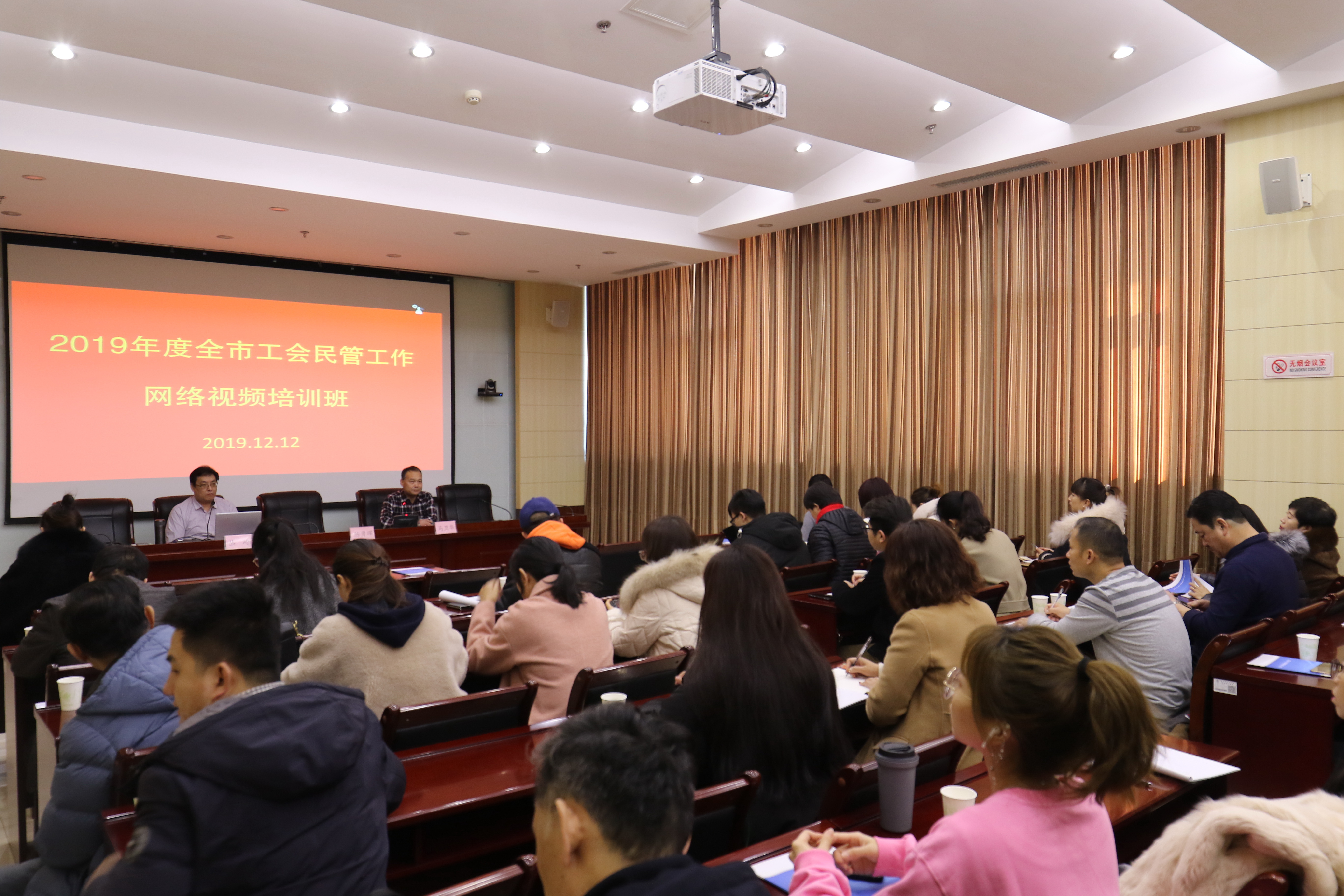 2019年12月12日,秦皇岛市总工会举办了全市工会民主管理工作网络视频培训班。市总工会民管部副主任丛岭详细讲解了有关民主管理工作的法律法规,为与会人员推广普及了《民主管理制度明白手册》的内容和使用方法,结合省总工会要求及市总工会“民主管理进民企”活动五年实施方案具体部署了全市“民主管理进民企”工作。市总工会副主席陈勇珲出席培训班并作总结讲话,一是要求全市各级工会着力打造民主管理方面的专家人才队伍;二是要求全市各级工会着力推进“民主管理进民企”活动取得更大实效;三是要求全市各级工会着力抓好典型培树,以点带面推动各项工作实现突破和发展。市总工会民管部部长马卫华主持会议,来自各县区、各系统产业、直属及部分重点非公企业的工会干部、职工代表200余人通过网络视频参加了培训。