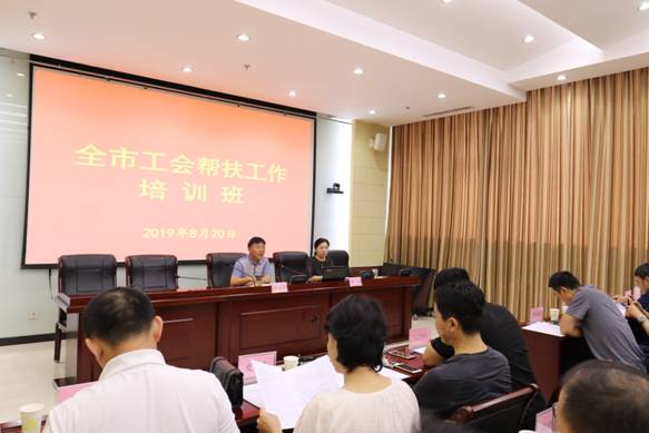 8月20日上午,市总工会在机关第一会议室召开了全市工会帮扶工作培训班,传达贯彻全省工会帮扶工作培训班会议精神,落实保障帮扶工作的新要求,就下一阶段工作进行安排部署。市属各系统、产业工会、直属基层工会的保障工作负责人到会场参会,全市各县、区总工会常务副主席、分管保障工作副主席、保障部长、服务中心主任、具体工作人员通过视频参加,全市各级工会共100余人参加了本次培训班。