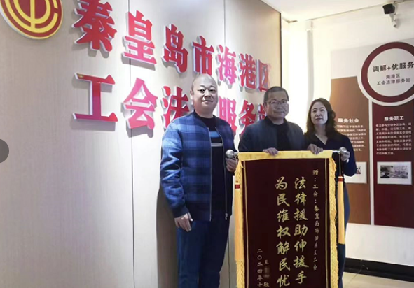 “真的太感谢海港区总工会了,如果没有区工会法律服务站的帮助,我不知道什么时候才能要回我的钱!”10月18日,受援人王某来到海港区工会法律服务站,将一面印有“法律援助伸援手 为民维权解民忧”的锦旗激动地送到工作人员手中,对服务站为其提供法律援助服务表示真挚的感谢。