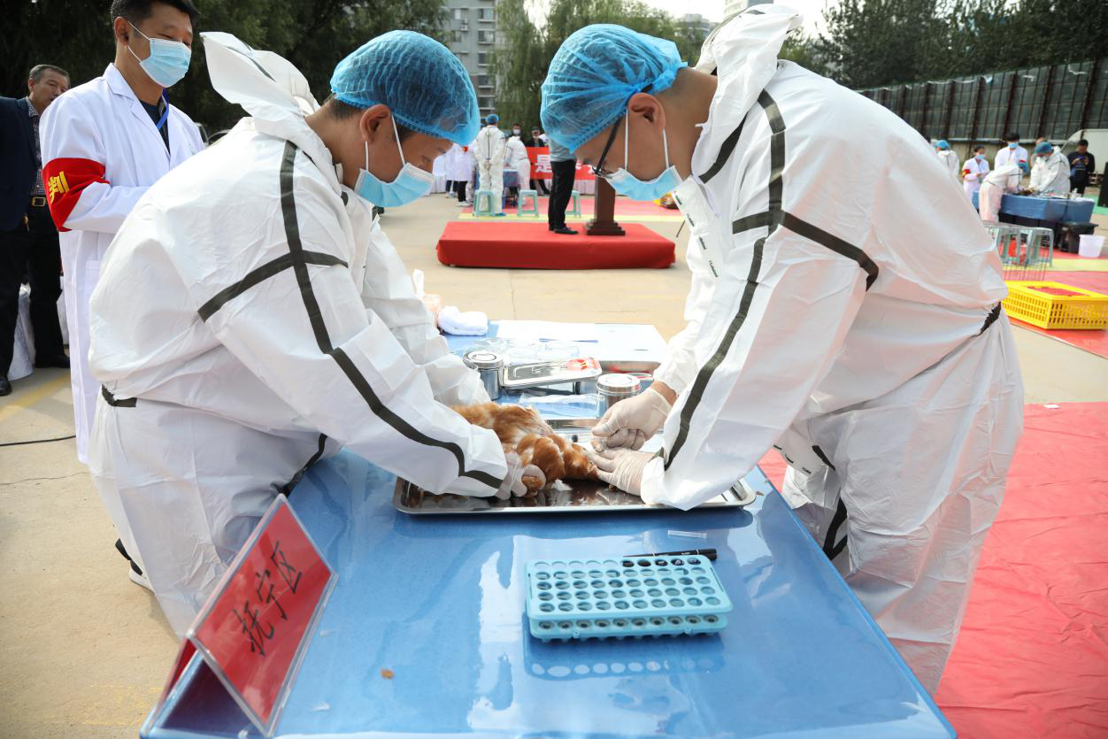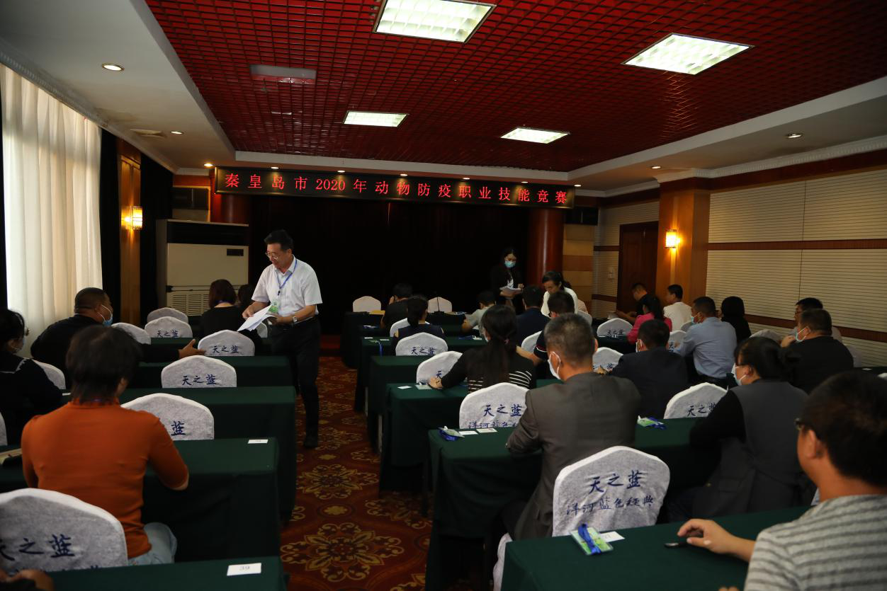 本项技能竞赛由秦皇岛市政府主办,市农业农村局、市人社局、市总工会联合承办。自今年7月以来,以县区为单位组织了动物防疫职业技能培训和预赛选拔,最后9个县区农业农村部门和重点畜牧龙头企业选拔出的48名优秀动物防疫工作者组成12支代表队进入总决赛。总决赛分为理论考试和实操比赛,在实操比赛中依次进行了鸡翅静脉采血、鸡心脏采血、鸡体解剖与采样、猪瘟疫苗免疫注射、猪前腔静脉采血共5项动物防疫技能考核。经过激烈角逐,最终昌黎县代表队获得团体一等奖,抚宁区代表队、海港区代表队获得团体二等奖,卢龙县代表队、青龙满族自治县代表队、山海关区代表队获得团体三等奖;许玲涵获得个人一等奖,魏明玉、于汭获得个人二等奖,姚凯、王素军、胡闯获得个人三等奖。