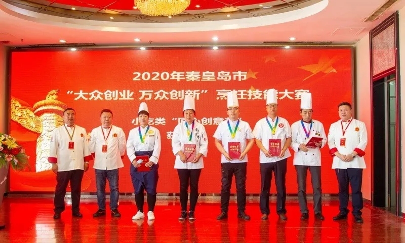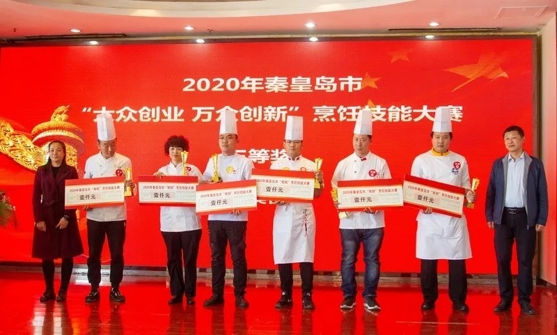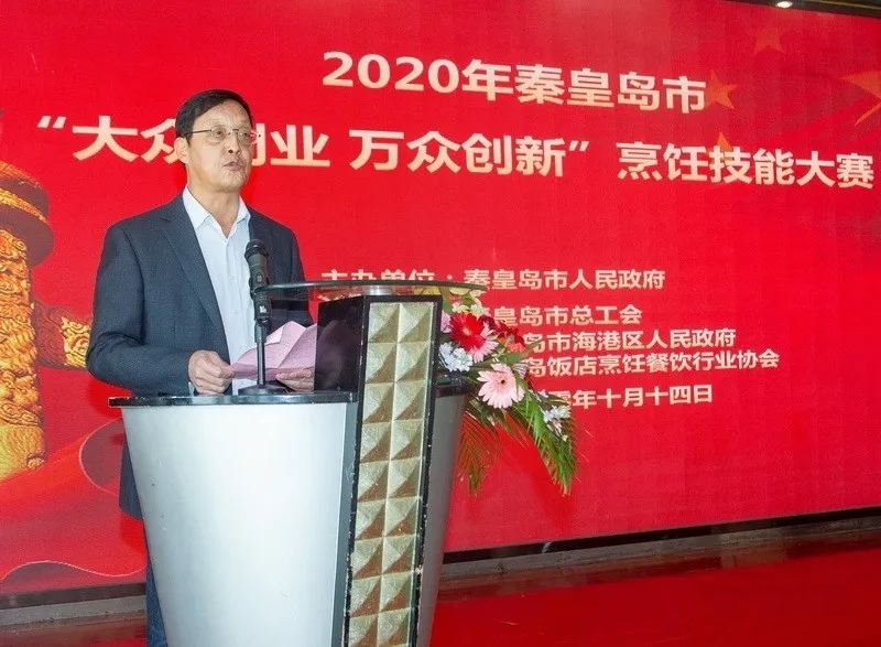 10月14日,2020年全市“大众创业、万众创新”技能大赛烹饪比赛在海天一色酒店举办。本次大赛由秦皇岛市人民政府主办,金彩汇、海港区人民政府、秦皇岛饭店烹饪餐饮行业协会承办。市人大常委会副主任、市总工会主席徐宪民、市政协副主席郑泉、市外事商务局副局长董立宏、市总工会党组成员曹文荣、海港区人民政府区长贠欣昇、海港区人大常委会副主任、区总工会主席刘凤奎、市饭店烹饪餐饮行业协会会长王舵等出席了比赛开幕式。