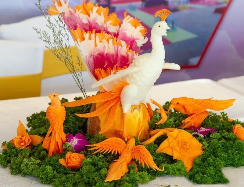 大赛分为烹调和小吃两个项目,其中烹调具体包括热菜、冷拼和刀工三个比赛内容。近百名餐饮服务行业精英选手参加了此次大赛,经过激烈角逐最终评出一、二、三等奖。此外,比赛现场还进行了食蔬雕刻表演,选手们精湛的技艺吸引了众多观众驻足观摩。